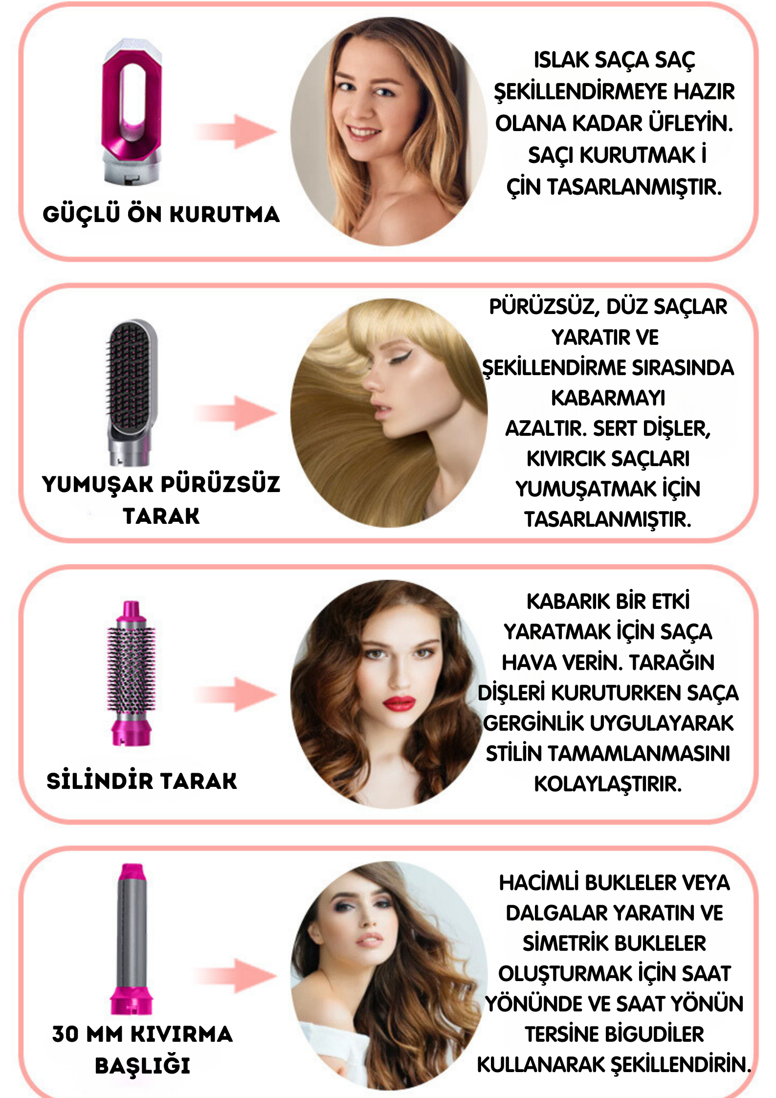 3 Adet 5 İN 1 SAÇ ŞEKİLLENDİRİCİ -